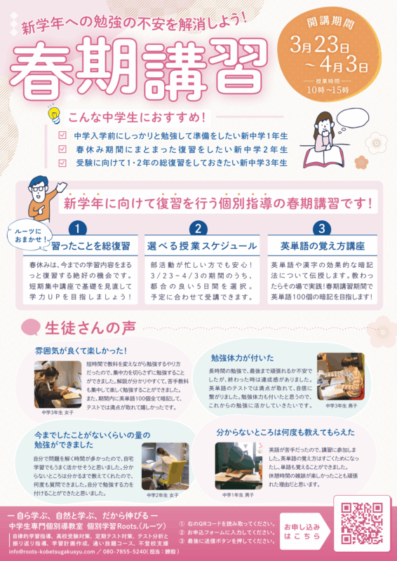 個別学習Roots.では、2026年度の春期講習の受付を開始しました!