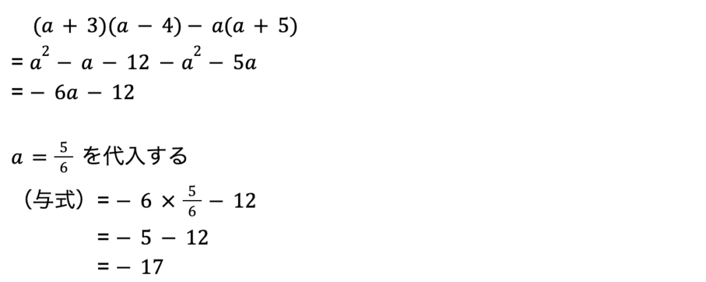 • 式の整理をして、数値を代入することを忘れてそのまま答えてしまうケアレスミスパターンがありますので注意です。